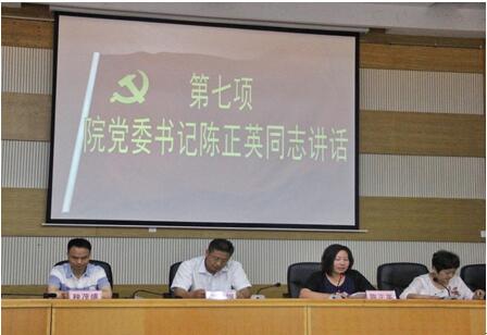 最后,院党委书记陈正英作总结讲话。她首先向新党员表示祝贺,希望新党员牢记今日宣誓承诺,永葆入党激情,并要求所有党员要结合学院“两学一做”实施方案中的要求、内容开展学习和工作。陈正英提出两点具体要求,一是教师党员应当淡泊名利,将“教书”和“育人”相结合,争创学院佳绩;二是学生党员应坚定信念,树立服务宗旨,加强理论修养,在思想和行为上发挥模范带头作用。
