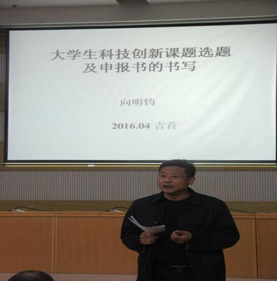 本网讯(马清)2016年5月9日晚19:00医学科技创新与竞赛工作室在大田湾校区多功能报告厅举行以“大学生科技创新课题选题与申报”为主题的讲座,邀请了向明钧教授主讲,参与对象主要为MK体育官网各班学生代表。MK体育官网向志钢副院长,医学创新工作室与竞赛工作室指导教师张钰华老师亲临讲座现场。在讲座开始前,向志钢副院长就大学生开展科技创新课题研究申报的必要性和重要性做了讲话,同时对同学们提出了殷切希望。向明钧教授在讲座中提出项目选题的原则为“实用性、创新性、可行性”,以自己指导申报成功同学的申报书为范本,对申报书撰写的要求和技巧进行了精彩全面诠释。