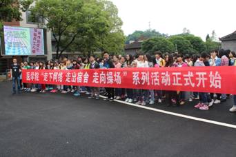 本网讯(通讯员:瞿贵芳)5月11号上午,MK体育官网2014年“走下网络,走出宿舍,走向操场”系列活动开幕式在MK体育官网大田湾校区羽毛球场顺利举行,隆重拉开了MK体育官网2014年“三走”系列活动的序幕。