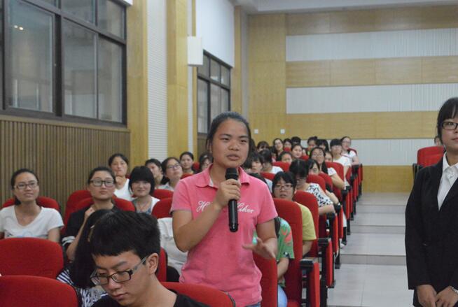 动员会结束后,接下来开展了经验交流会。欧玲林、易春艳、邱旋、陈丽等学姐一一为大家传授自己在全国技能大赛、专业学习、考研经历、就业选择等方面的体会和经验。欧玲林、易春艳还现场给大家演示了国赛内容中的推拿手法,使学弟学妹现场感受了国赛获奖者的风采和水平。曹一学姐也用PPT向大家展示了她在澳大利亚从事推拿工作的感受、获得签证的经验,介绍了中医在澳大利亚获得了立法保护,目前针灸推拿在澳大利亚的发展情况,希望学弟学妹加强英语的学习和针灸推拿技能的掌握,考虑出国工作,感受不一样的风景。独立发言结束后,嘉宾们同时前台就座,和台下学弟学妹现场交流互动,大家就自己的关心或疑惑的问题积极和嘉宾们探讨,很多回答得到了大家的共鸣,现场气氛热烈,整个交流会圆满结束。