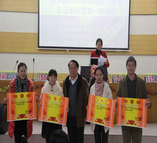 在比赛结束后,谭院长总结了此次的竞答比赛非常精彩,对老师的竞答和同学的娱乐环节表示赞叹。希望这样的活动以后能更多,会更精彩。最后为获奖教师队伍代表颁奖并合影留念。此次活动由MK体育,MKsports,MK体育官网,MK体育在线投注临床医学专业认证办公室,MK体育,MKsports,MK体育官网,MK体育在线投注学工办主办。MK体育,MKsports,MK体育官网,MK体育在线投注团总支,学生会承办。