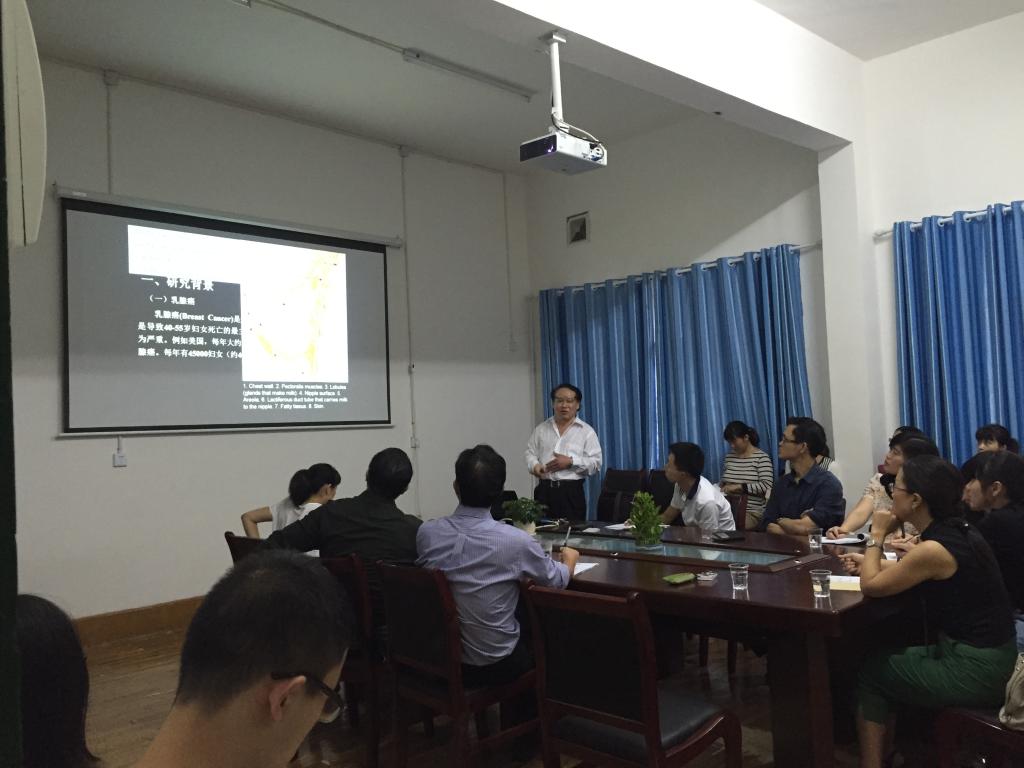 2015年9月23日在MK体育官网医学研究中心学术会议室举行了本学期的首场学术报告会。主讲人为MK体育官网院长谭敦勇教授,学术报告题目为“变异催乳素受体与乳腺癌”。由科研办秘书楚婷老师主持,有来自MK体育官网的老师和学生共20余人参加。