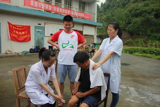 义诊活动开始的第一天上午,从早上七点钟一直到中午十二点多,李老师一直站在义诊点,指导志愿者们给前来接受义诊的村民们做艾灸、推拿等项目。老师在观察过程中,发现的问题都会与志愿者们进行现场教学,指导志愿者们如何进行正确的医疗。志愿者们在老师的悉心指导下专业知识得到快速的提高。他告诉我们:只有不断地修正实践过程中的不足,才能更好地掌握专业知识并真正运用起来。