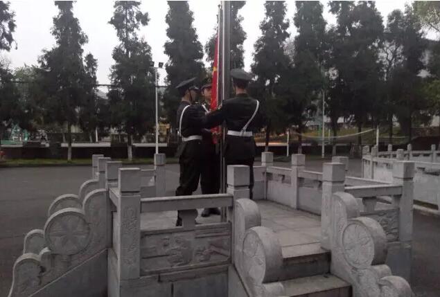 图为:国旗班升国旗